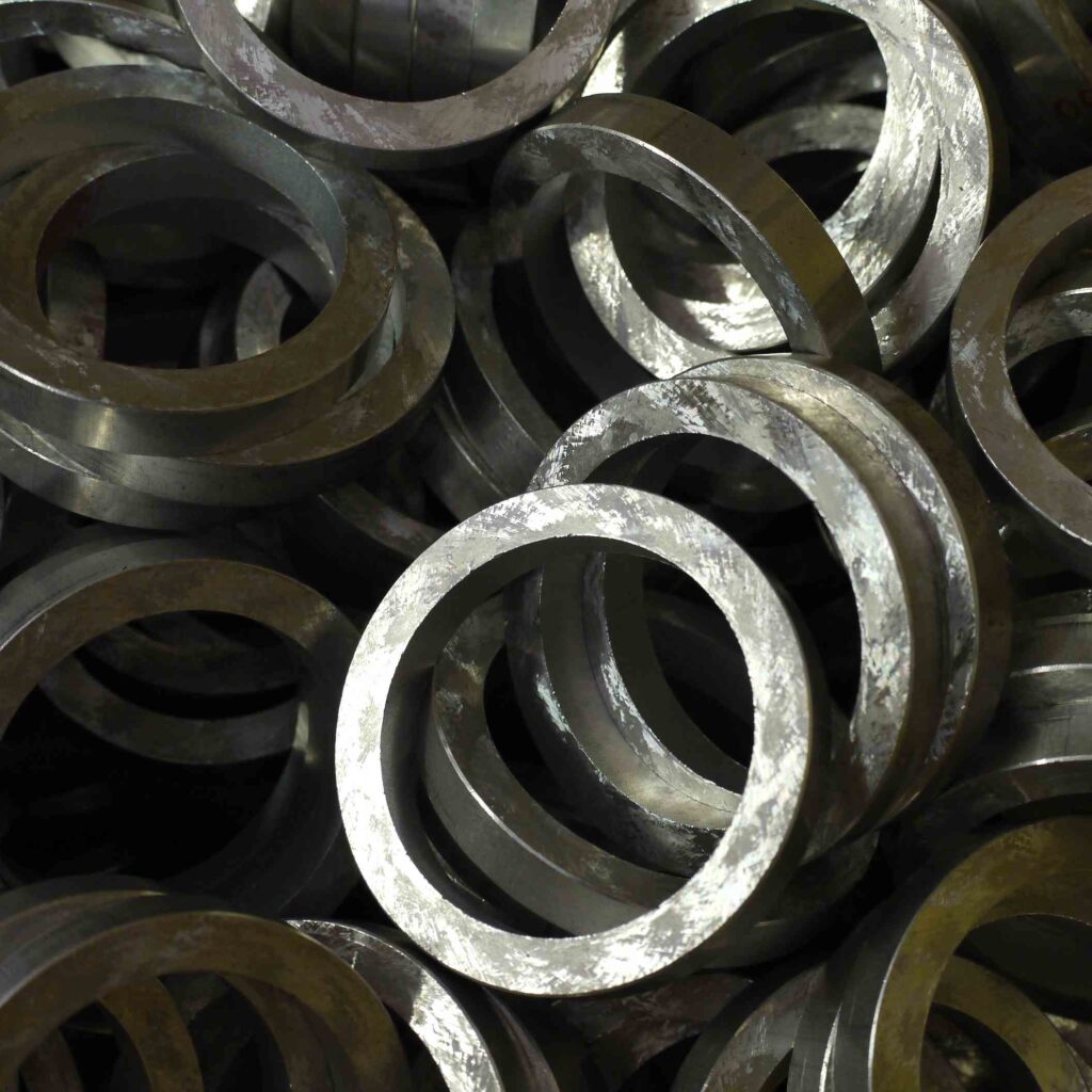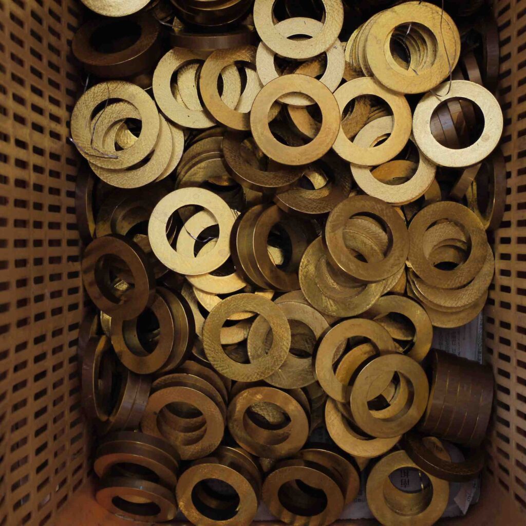 長野県にあるコシナ中野ファクトリーには、今日もコンテナヤードに続々と金属の部材が入庫しています。直径や長さ、厚みもさまざまな金属のリングやチューブ。素材はおもにアルミもしくは真鍮です。これらの部材はすべてレンズの機構や外装に使われるものです。