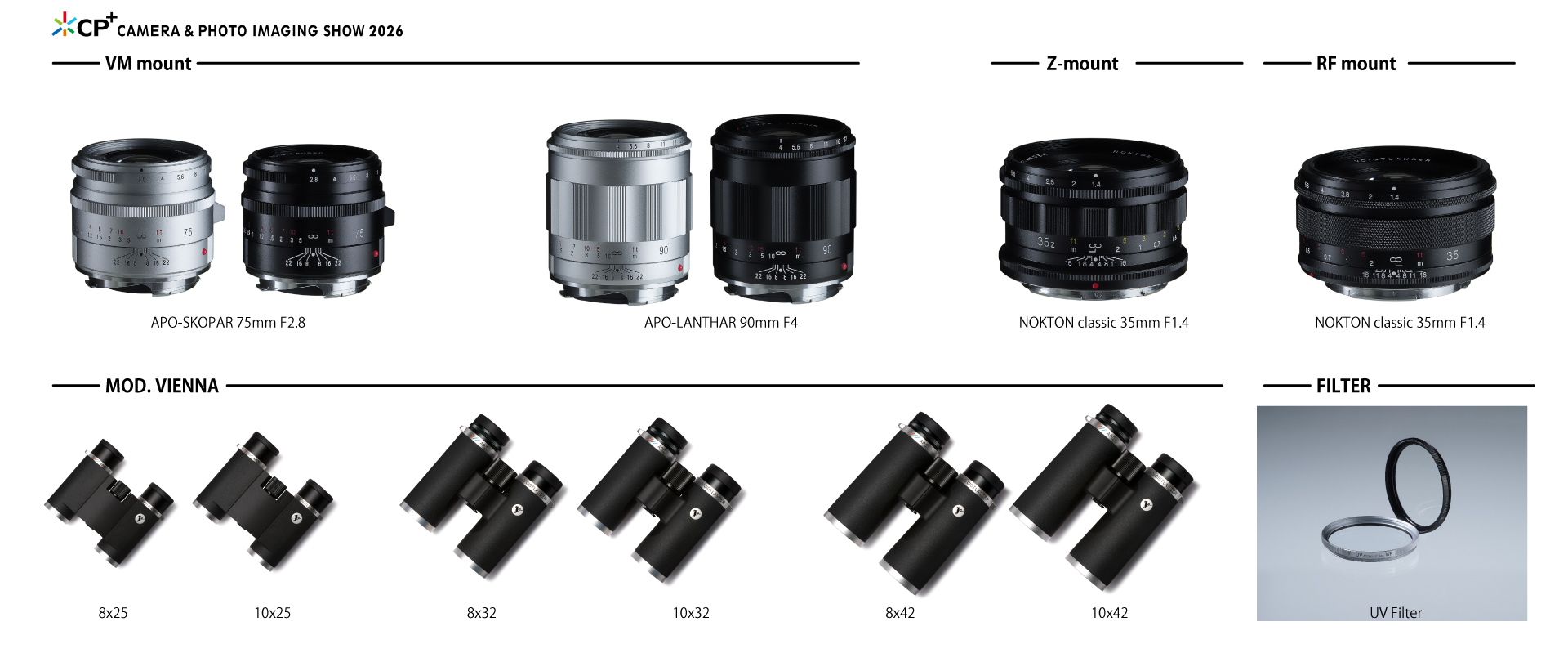 2026年2月26日よりパシフィコ横浜にて開催のCP+2026及び、CP+2026オンラインにて、出品いたします参考出品製品をご紹介いたします。CP+2026リアル(パシフィコ横浜コシナブース)開場では、これらの参考出品製品が、コシナブースカウンターにてタッチアンドトライが可能です。(タッチアンドトライできるのはカウンターのみとなります。)