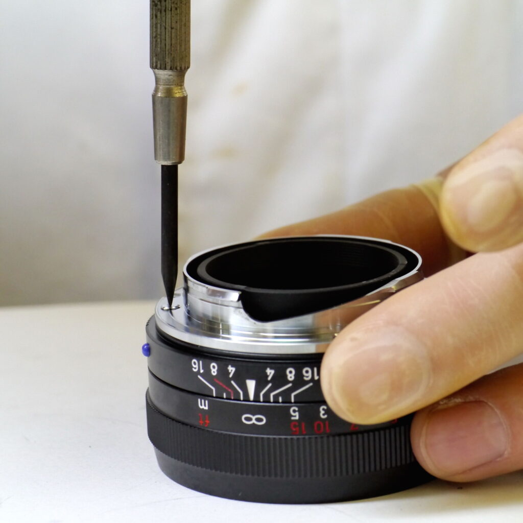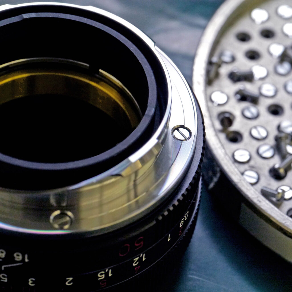 コシナのハイエンド交換レンズのマウント面にご注目ください。レンジファインダー用の製品を中心として、マイナスねじを復活させています。上の写真は、その製作過程を撮影したものです。プラスかマイナスか、ねじのアタマなんてどちらでもいい。あるいは、プラスねじの方が近代的なのだから優れた規格であるに違いない。そんな風にお考えの方が多いことは承知しております。とはいえ、ごく一部のお客様は、少なくとも1970年代までの名品と呼ばれるヨーロッパ産の交換レンズに使われていたのはプラスでなくマイナスねじだったという事実を記憶しておられ、現代の光学製品にはプラスねじだけが使われているのに物足りなさを感じていらっしゃることも理解しています。