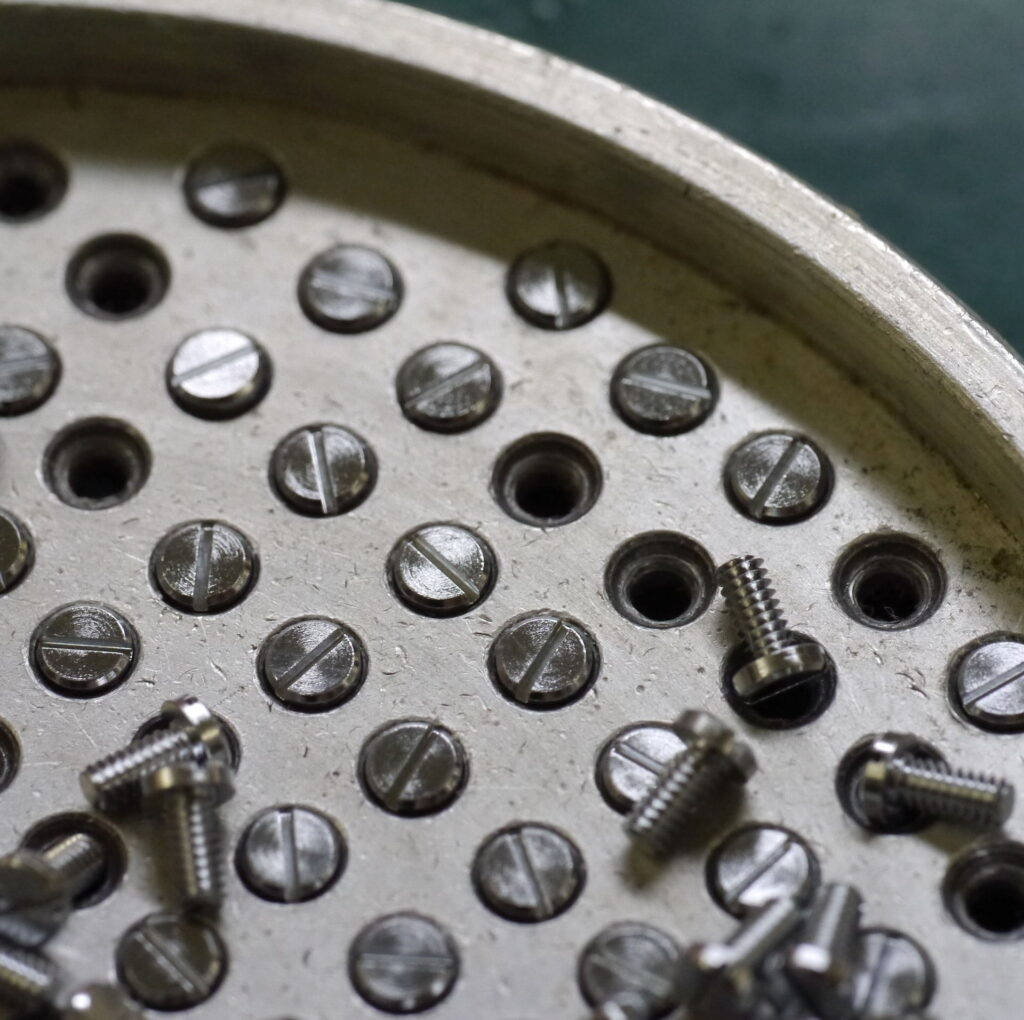 そもそもプラスねじとは効率を重視する観点から流布してきた規格です。マイナスねじであればドライバーを手に持った瞬間、ビットの方向を考えてねじをドライバーに着装しなければなりません。プラスであればそれをほとんど考えずに着装できます。数本のねじならいざしらず、数百本ものねじを締め付ける作業をくり返す現場ではマイナスねじはロスが多すぎたのです。大量に、効率よく、手早く作る。その目的を果たすにはプラスねじが有効なのは確かです。それゆえ、大量生産品のイメージが拭いきれないことから、現在でもヨーロッパでは工芸品や高級腕時計にプラスねじを使うことは決してありません。