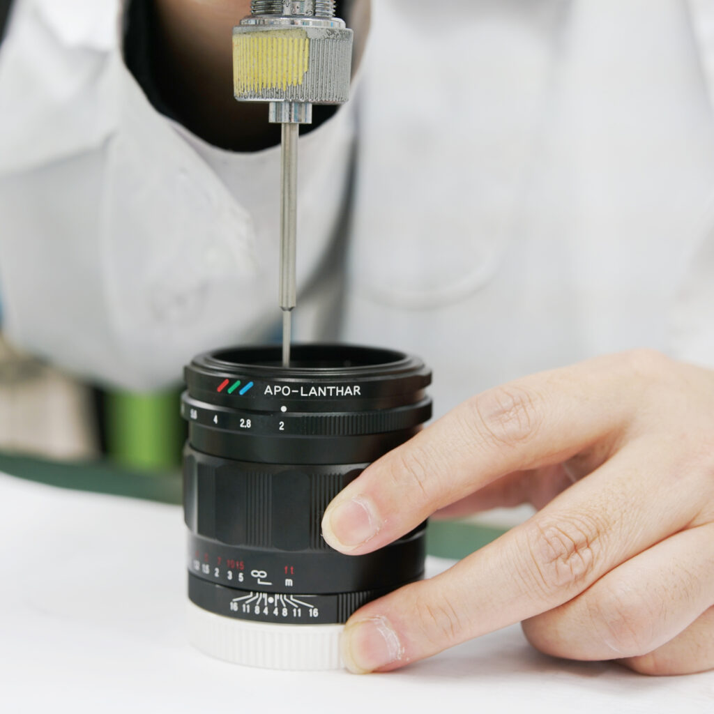 フォクトレンダーの交換レンズは、すべて長野県にあるコシナで作られている。企画・設計から始まり、レンズ製造・金属加工による部品作りを経て、必要とされるパーツができあがる。それを組み上げて1本の交換レンズという製品に仕上げるのが製造部門の役割だ。